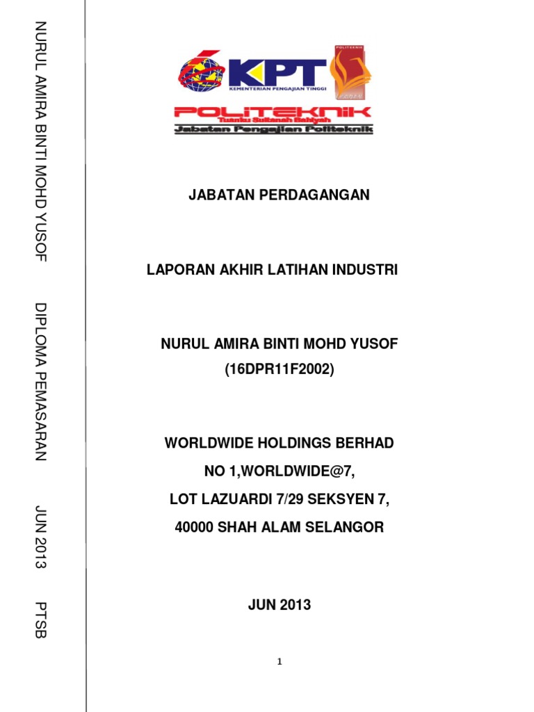 Report latihan industri. 603 2603 6885 603 2603 6879. Tiada Had Pendidikan.